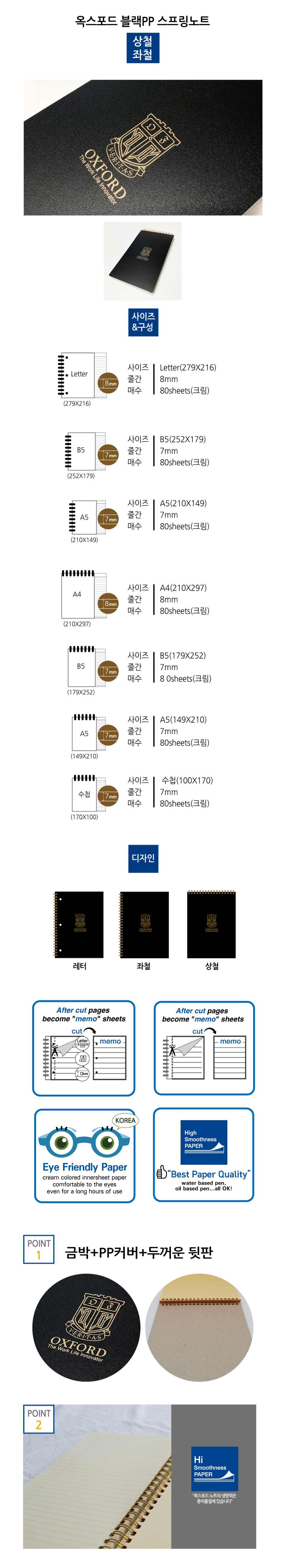 [Oxford] 3500 Black PP Cover Top Spiral Notebook A5 | 7mm Lined / 80 Sheets | 210*149mm | Top Twin Spiral Bound | Made in Korea