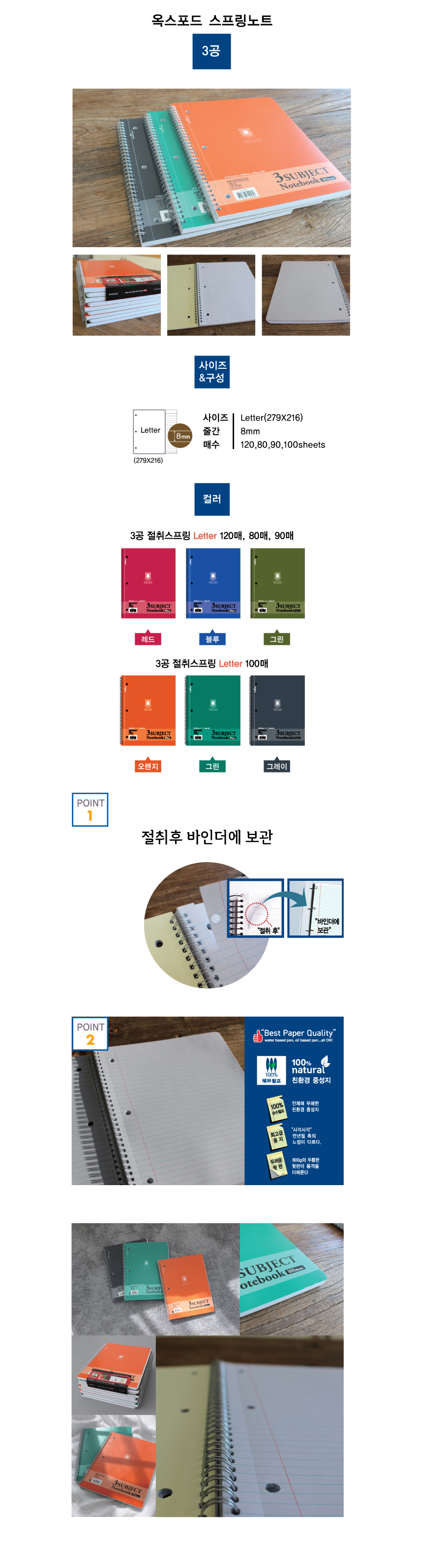 [Oxford] 4000 3-Hole Perforated Spiral Notebook Letter Size | 8mm Lined / 120 Sheets | 279*216mm | Left Twin Spiral Bound | Made in Korea