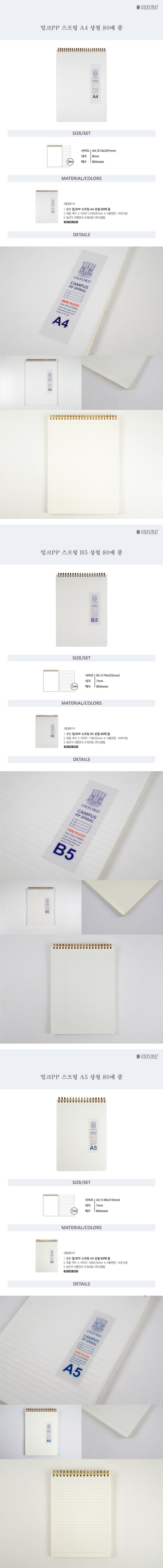 [Oxford] 4000 Milk PP Cover Top Spiral Notebook B5 | 7mm Lined / 80 Sheets | 252*179mm | Top Twin Spiral Bound | Made in Korea
