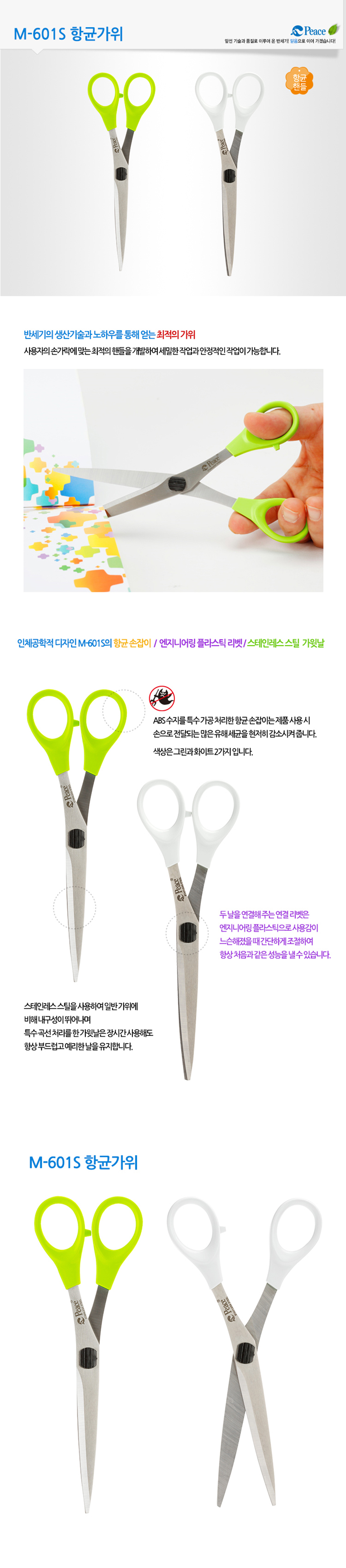 [PEACE] Anti-Bacterial Office Scissors M-601S | 73mm Stainless Steel Blade | Adjustable Tension Rivet | Ergonomic Soft Grip | Made in Korea