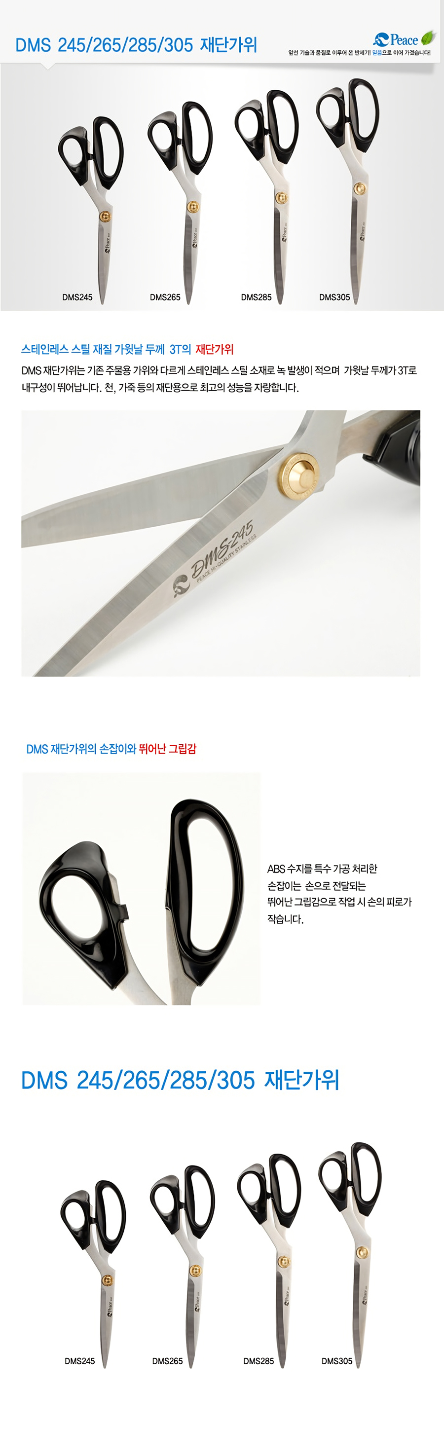 [PEACE] Master Tailor Scissors DMS-305 | 136mm Stainless Steel Blade | 3mm (3T) Extra Thick | Professional Large-Scale Fabric Cutter | Made in Korea