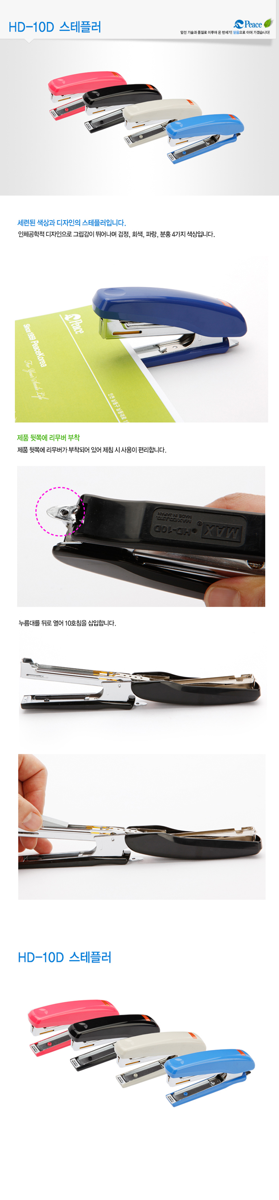 [PEACE] MAX Desktop Stapler HD-10D | Built-in Remover | Ergonomic Design | No.10 Staples | Made in Korea