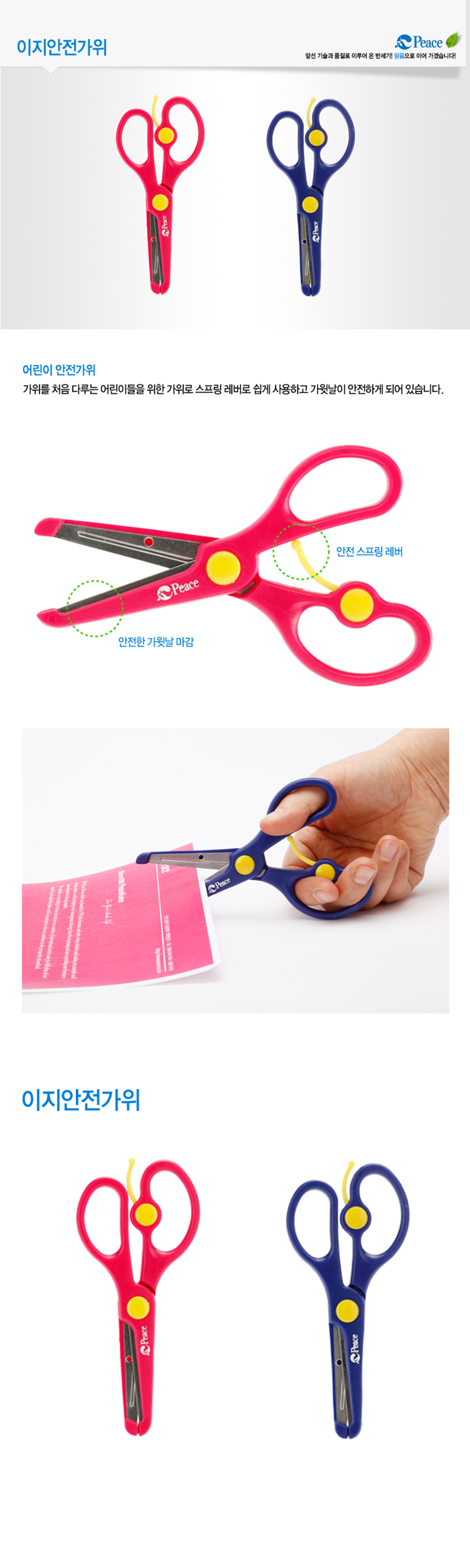 [PEACE] My First EZ Safety Scissors for Kids | Spring-Assist Lever | Protective Plastic Cover Blade | Toddler-Friendly | Made in Korea