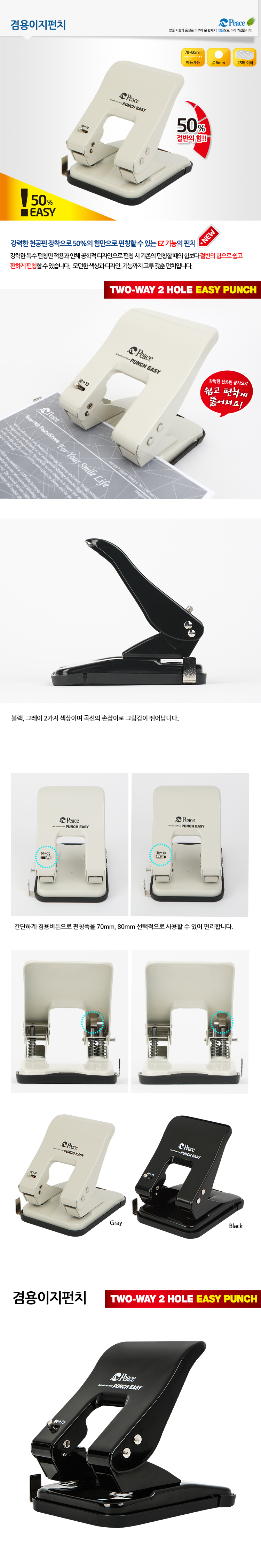 [PEACE] Power EZ Dual-Distance 2-Hole Punch | 50% Less Force | 70mm & 80mm Adjustable | 25-Sheet Capacity | Made in Korea
