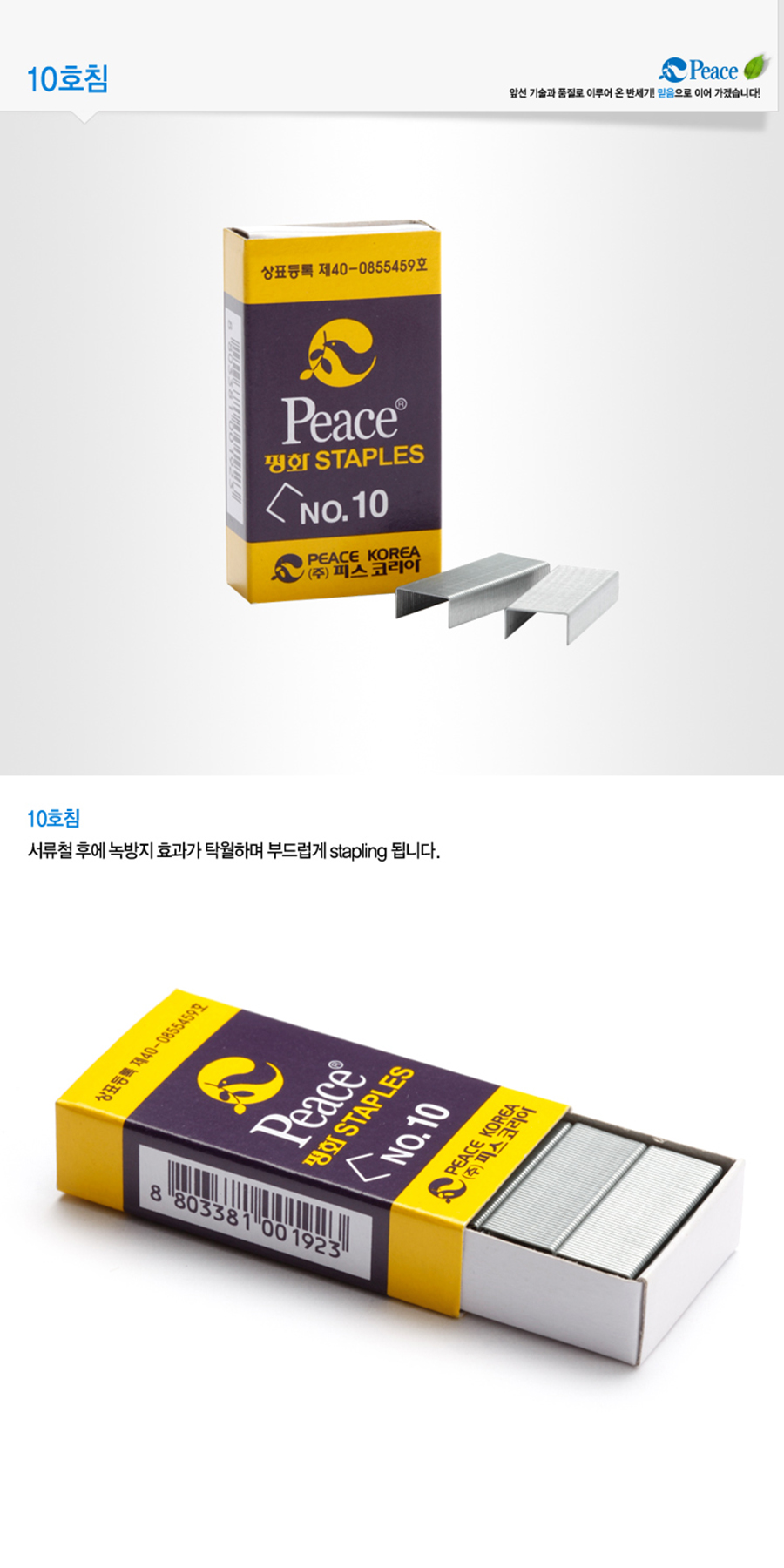 [PEACE] Standard Staple Pins NO.10 | 1,000 pcs | Rust-Resistant Coating | Smooth Stapling | Made in Korea