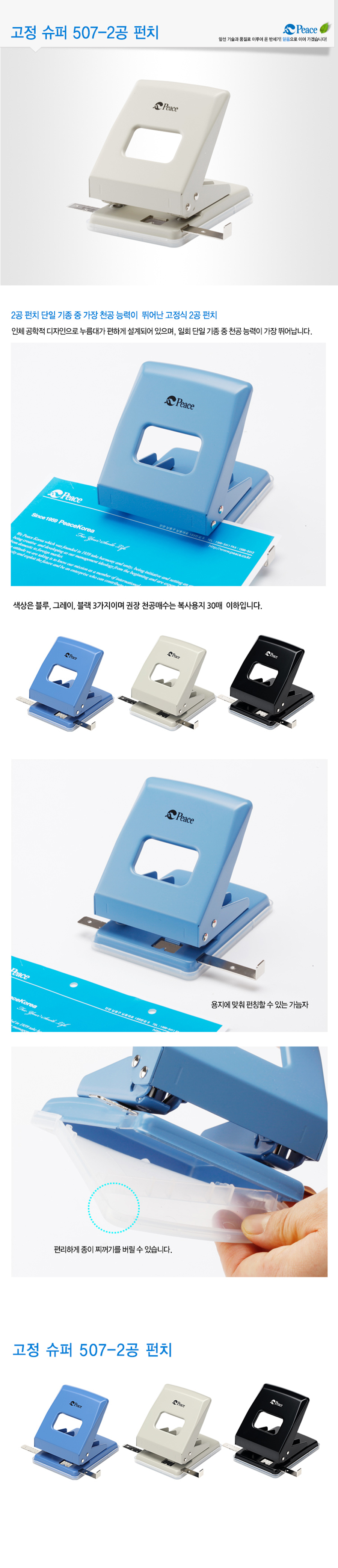 [PEACE] Super 2-Hole Fixed Punch 507 | 30-Sheet Capacity | Top-Tier Fixed Mechanism | Guide Ruler | Made in Korea