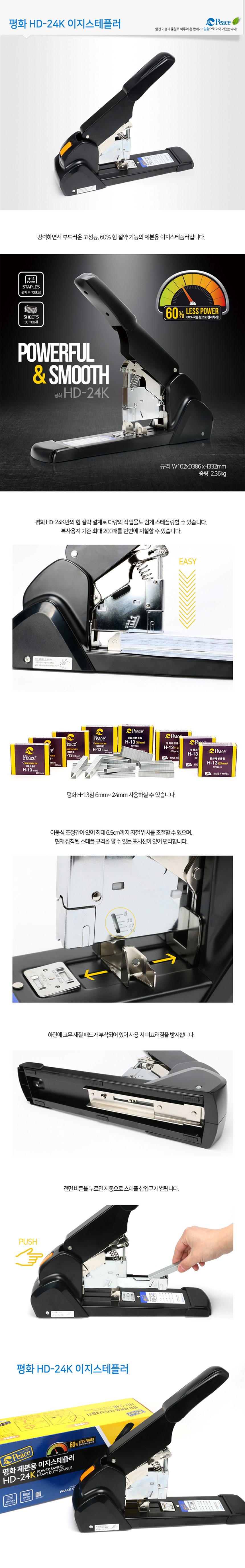 [PEACE] Ultra-Heavy-Duty Easy Stapler HD-24K | Staples up to 200 Sheets | 60% Power Saving | Made in Korea
