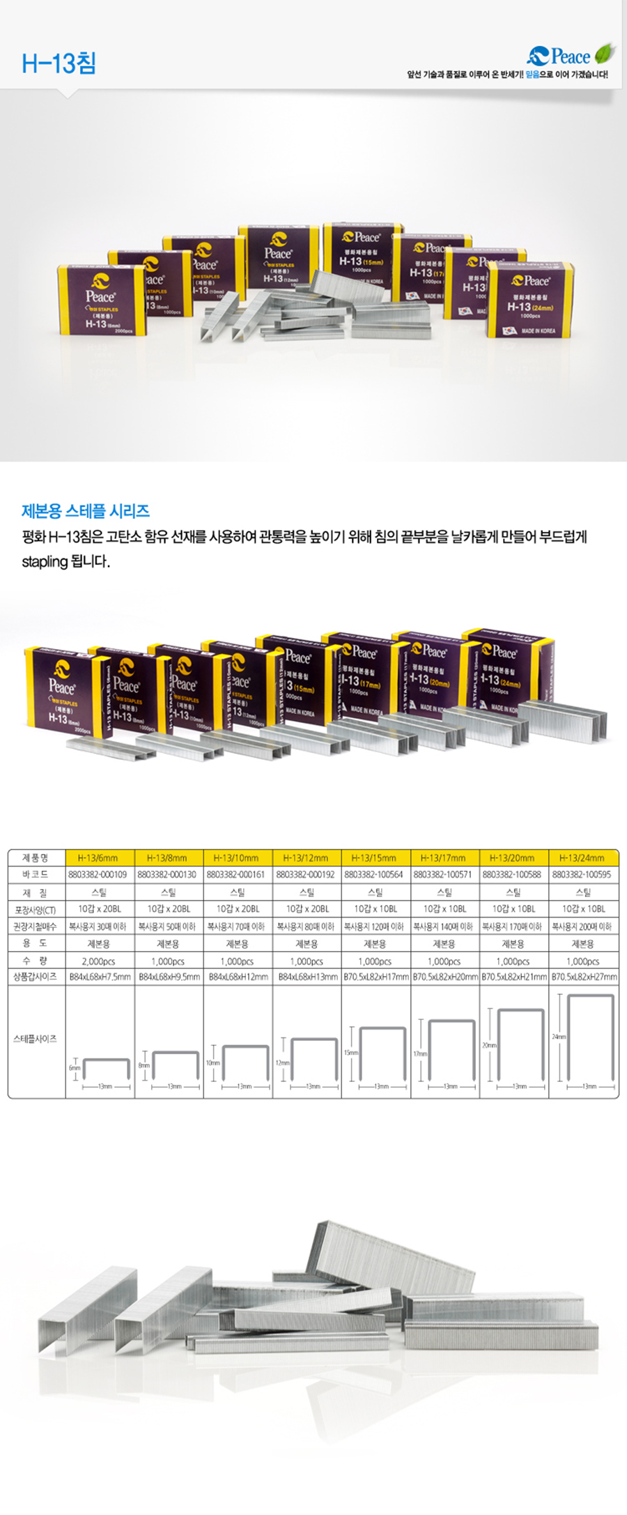 [PEACE] Ultra-Heavy-Duty Staple Pins H-13 (24mm) | 1,000 pcs | High Carbon Steel | Maximum Penetration | Made in Korea