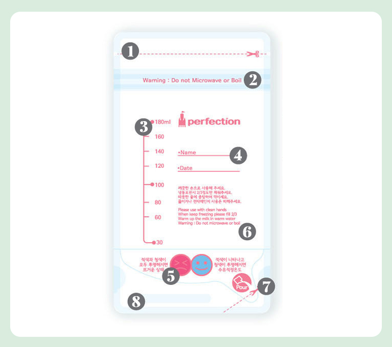 Product Information | Product name and model name | Perfection Double Zipper Variable Temperature Breast Milk Storage Pack 180ml 60 Sheets / 120 Sheets |