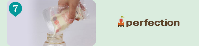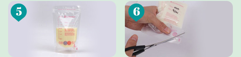 Turn the thawed breast milk over and open the bottom outlet with scissors.