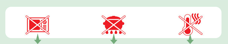 7. Do not use hot water or microwave oven.