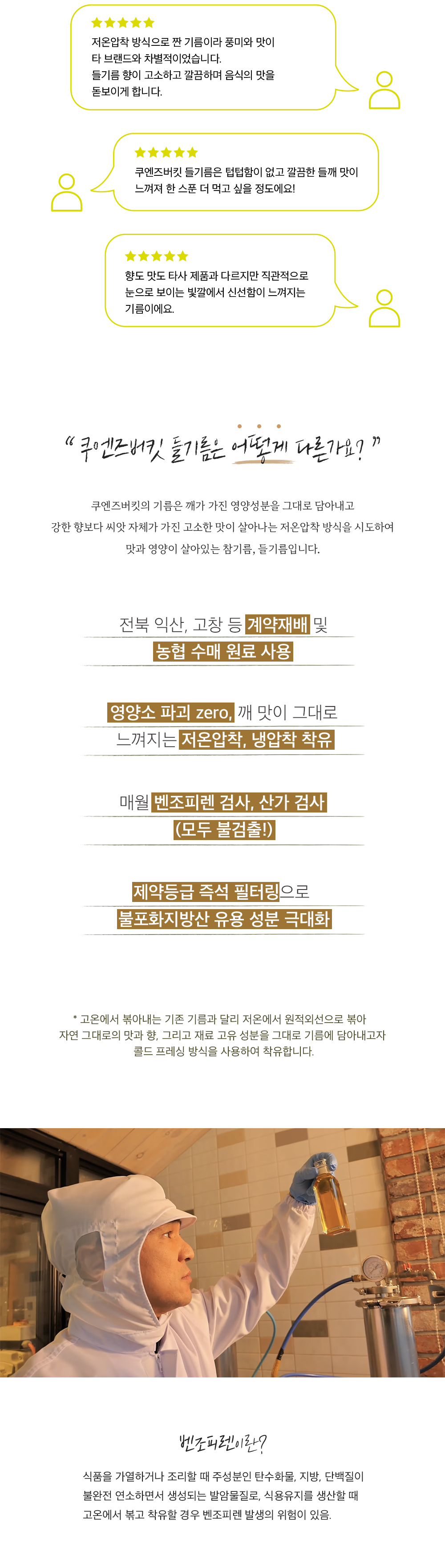 Carefully cultivated Dayu and Deulssem perilla seeds from Gochang and Iksan, Jeollabuk-do are used to deliver authentic quality and freshness.