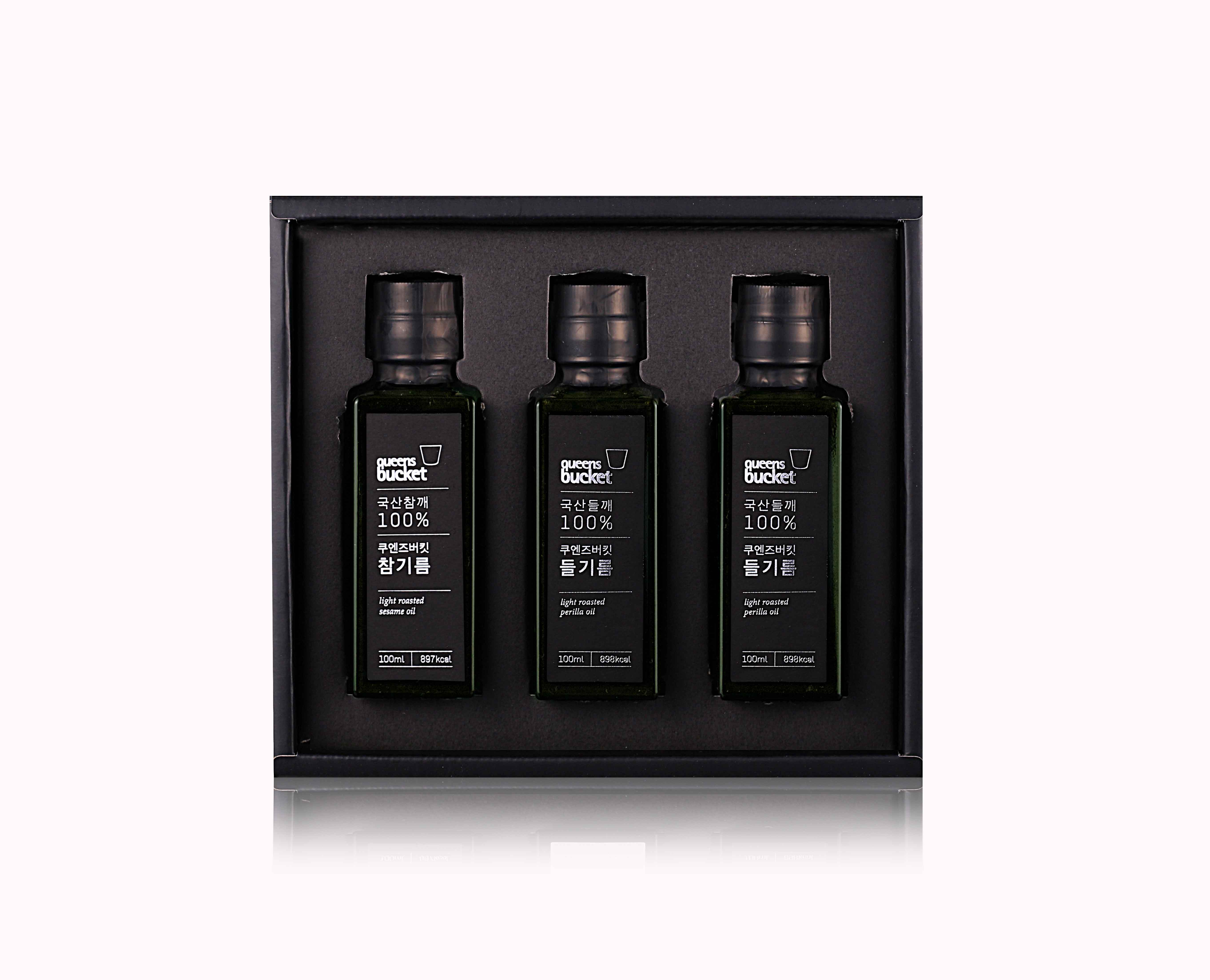 QUEENSBUCKET Korean Sesame, Perilla , Perilla Oil Set (100ml x 3) _ Premium Korean Cold-Pressed Oils