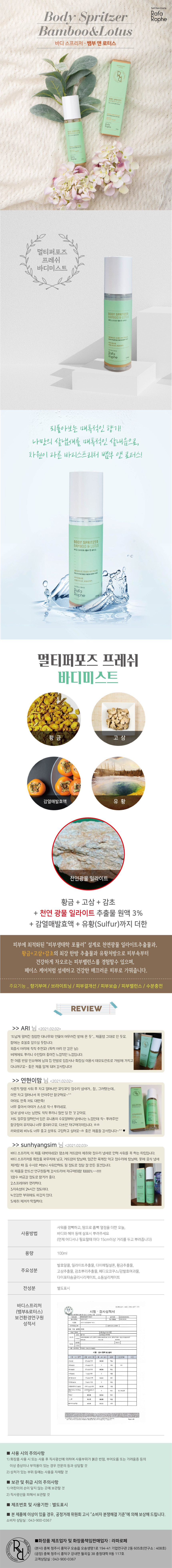 RafaRophe Body Spritzer Bamboo & Lotus is not just a fragrance; it is a "Skin Ecology Formula" designed to transform your natural body scent into a captivating aroma while improving skin health. Experience a refreshing mist that balances your skin's ecosystem with premium natural minerals and traditional Korean herbal extracts.