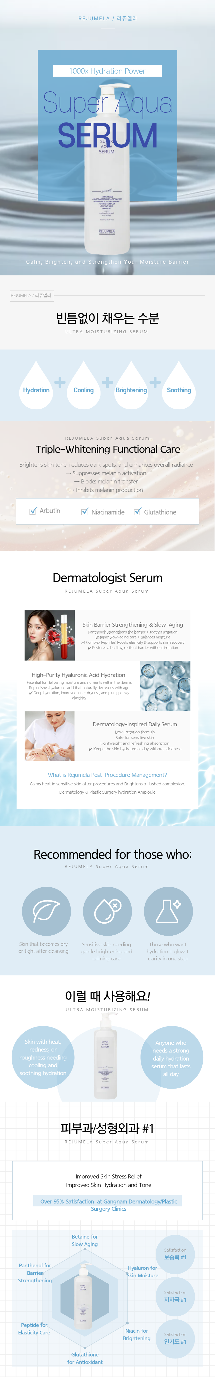 REJUMELA Super Aqua Serum 500ml – Cooling, Soothing & Brightening Hydration Serum with High-Purity Hyaluronic Acid _ Made in KOREA