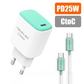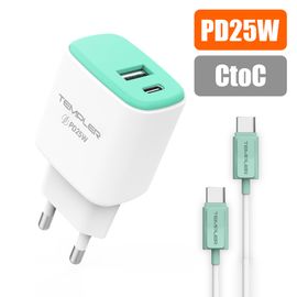 [S2B] TEMPLER PD 20W USB C Charger 2Port _ with USB C to USB C Cable, Dual Port USB-C + USB-A Fast Wall Charger, Power Adapter Compatible with iPhone Samsung Galaxy