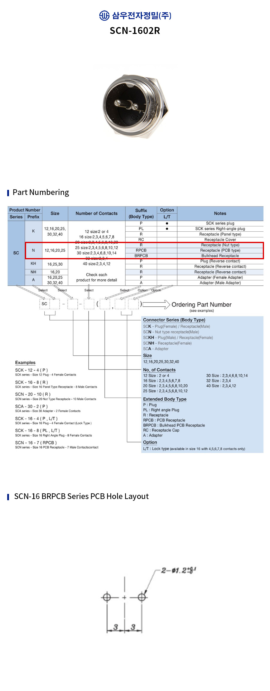 SAMWOO ELECTRONICS SCN-1602R Circular Connector Receptacle Type 2 Pin Precision Industrial Panel Mount Socket Made in Korea Genuine