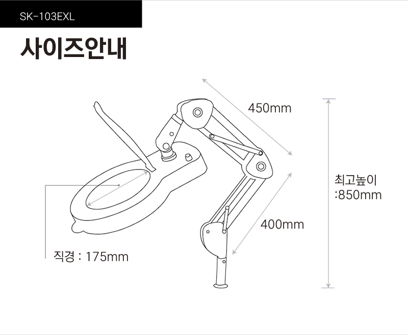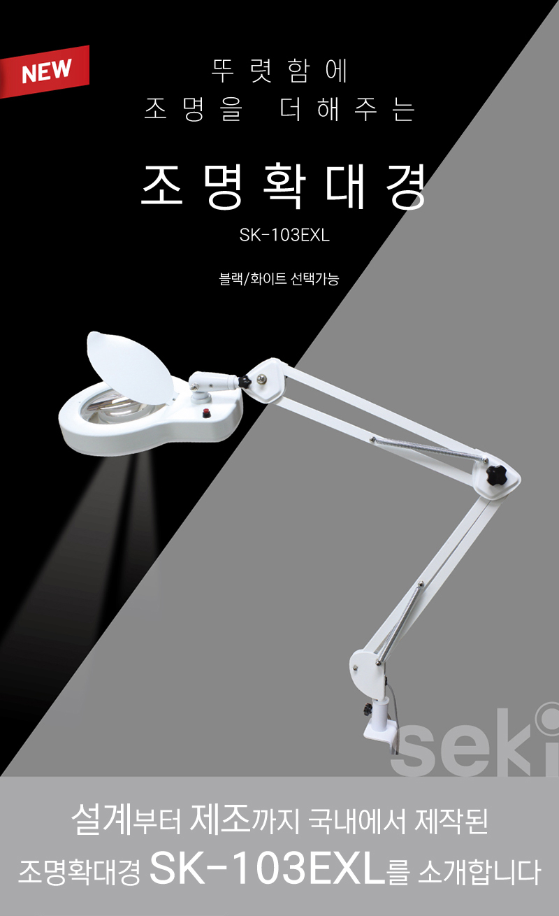 SEKI_OPTICAL 5X LED Illuminated Magnifying Glass SK-103EXL-5X with 175mm Large Lens, Built-In Whie LED Lamp, Adjustable Joint Structure, and High-Tensile Spring