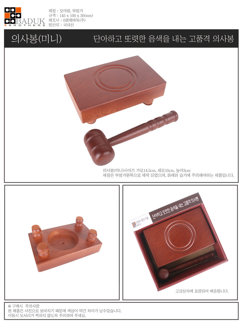 Six Brothers Authentic Mini Gavel Set HJNB050 Premium Bubinga Wood Compact Desktop Ornament Made in Korea