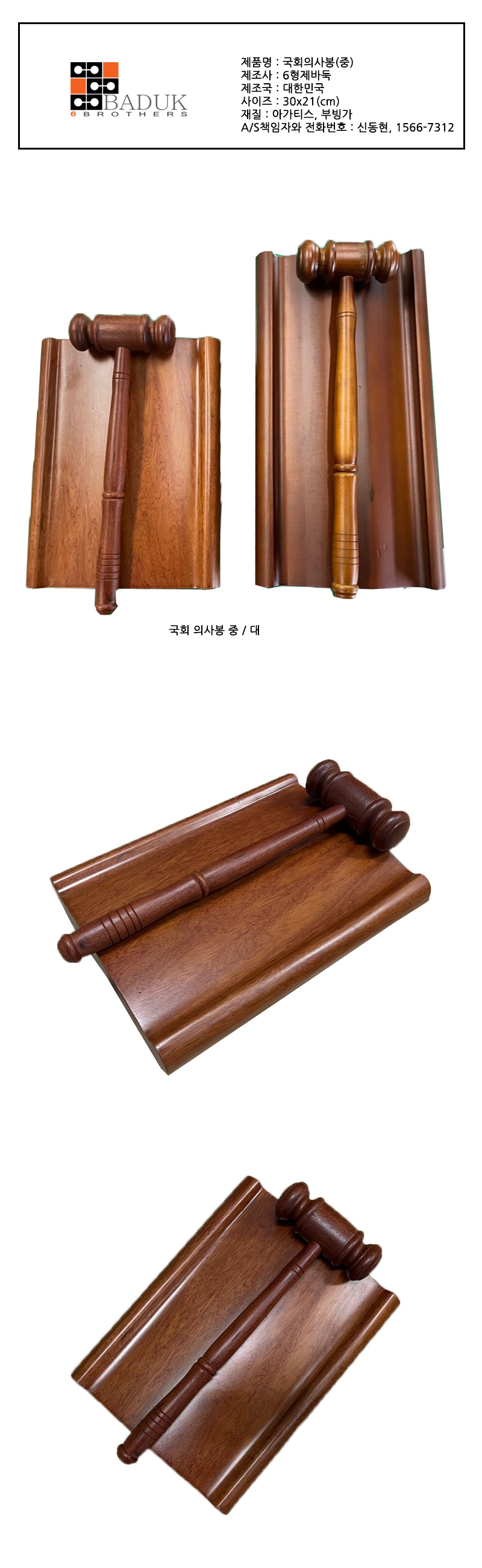 Six Brothers National Assembly Style Gavel Set Medium Bubinga Wood Authoritative Design Made in Korea