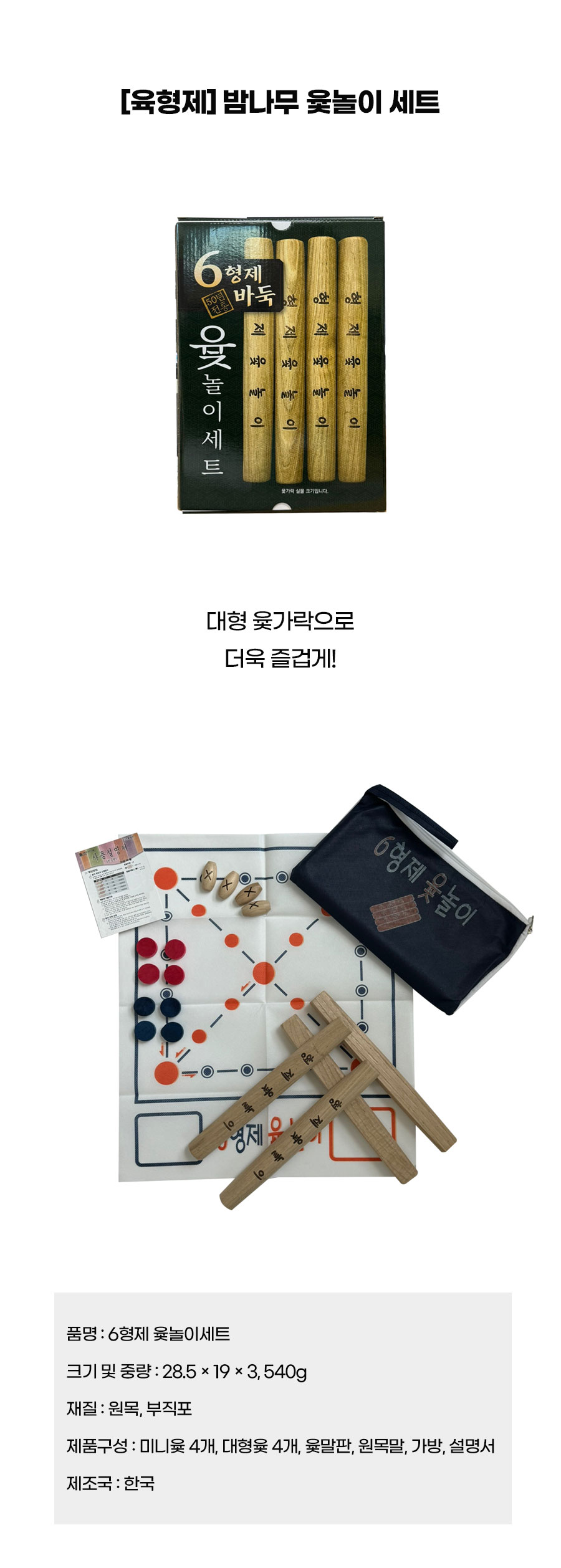 Six Brothers Premium Large Chestnut Wood Yut Nori Set HJWO350 with Mini Set and Portable Bag Made in Korea