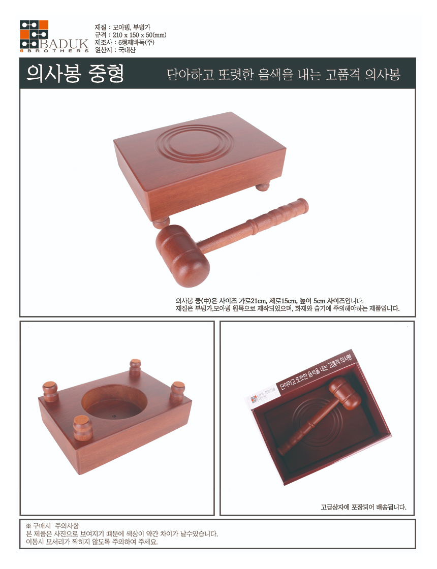 Six Brothers Premium Medium Gavel Set HJNB080 Authentic Bubinga Wood Portable Ceremony Hammer Made in Korea