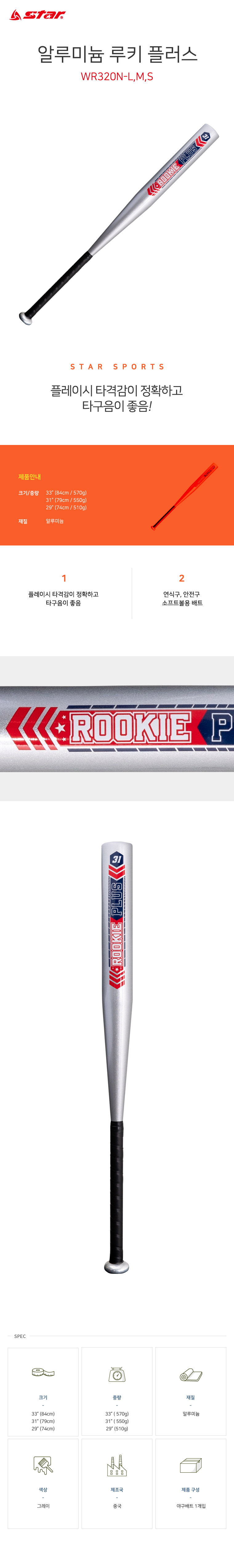Star Sports Aluminum Baseball Bat Rookie Plus 29-inch Lightweight 510g for Youth and Beginners (Softball & Safety Ball Use)