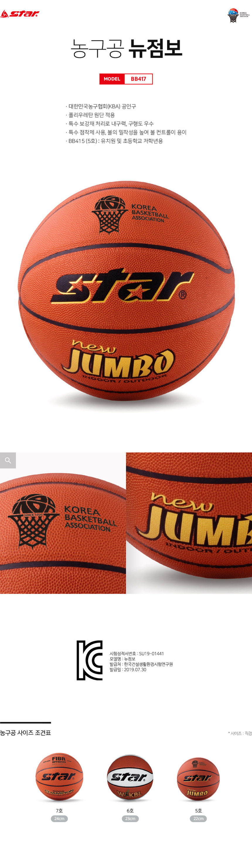 Star Sports Basketball New Jumbo BB415 Size 5 KBA Official Certified Ball Polyurethane Material with Special Adhesive Grip for Kids and Elementary School Students