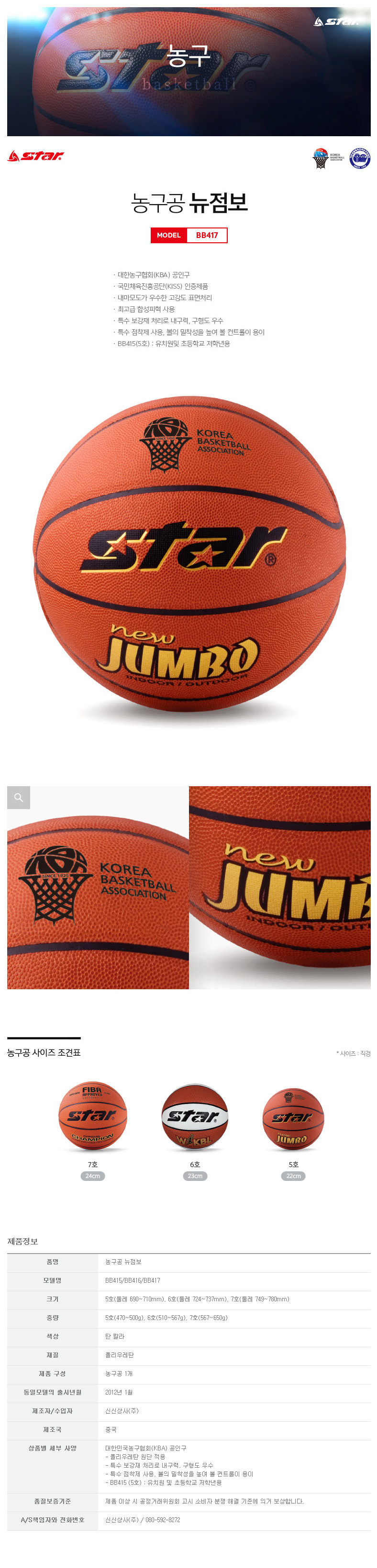 Star Sports New Jumbo Basketball No. 7 BB417 KBA Official Certified High-Durability Synthetic Leather Training Ball