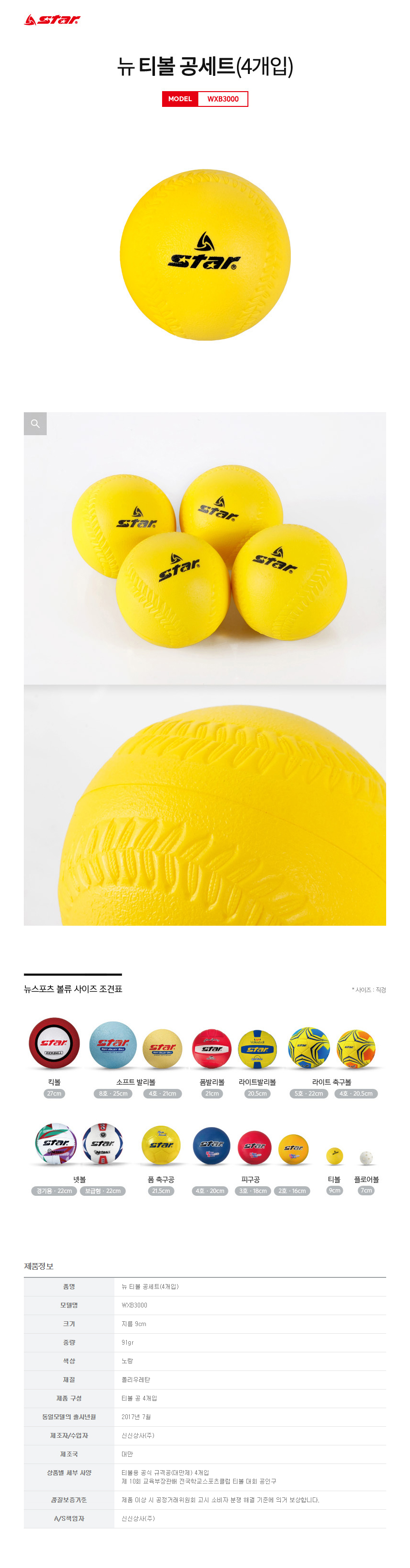 Star Sports Official Tee Ball Set WXB3000 4-Pack Certified 9cm Polyurethane Safety Training Balls for Schools and Clubs