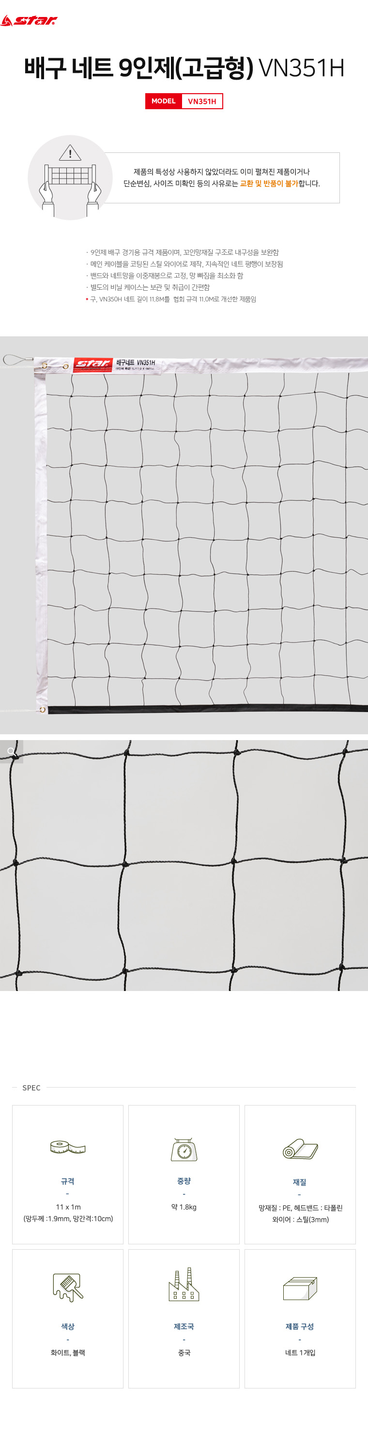 Star Sports Professional Volleyball Net for 9-Player Match VN351H Premium PE Twisted Mesh with Steel Wire Cable and Tarpaulin Headband 11m x 1m