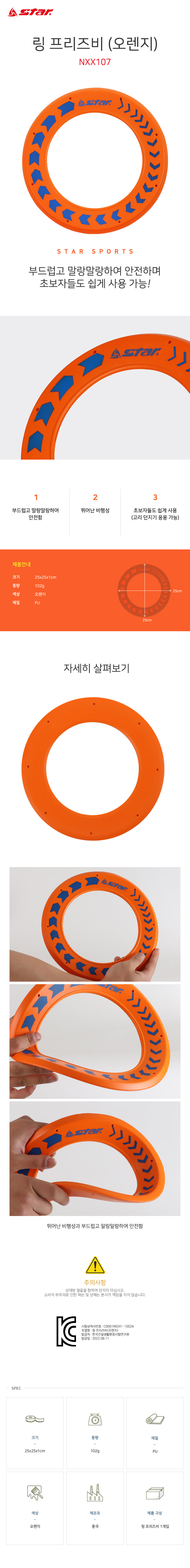 The Star Sports Ring Frisbee NXX107 in vibrant Orange is designed for maximum safety and exceptional flight performance. Made from premium soft PU (Polyurethane) material, this frisbee is flexible and "squishy," ensuring that it won't cause injury or pain even if missed during a catch. Its unique ring-shaped design not only provides superior aerodynamics for long, stable flights but also allows it to be used for creative games like ring-toss. Measuring 25cm in diameter and weighing only 102g, it is incredibly easy for children and beginners to throw and catch. Whether at the park, beach, or school playground, the NXX107 offers a safe and engaging way to improve hand-eye coordination and enjoy active outdoor fun.