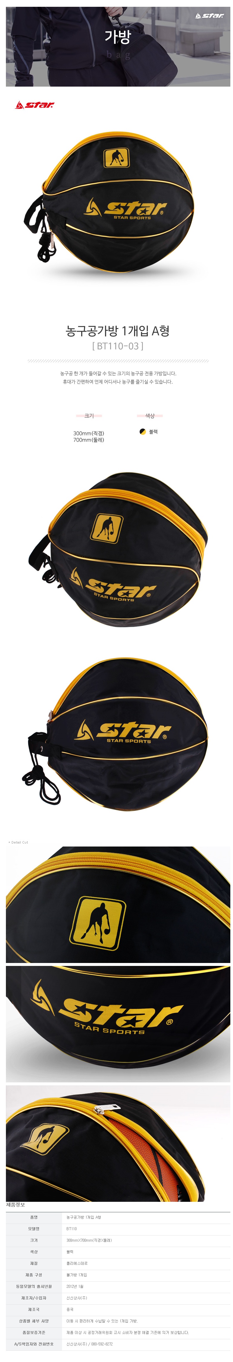 Star Sports Single Basketball Carry Bag BT110-03 A-Type Portable Handheld Case with Zipper and Handle for Size 7 Basketball Black
