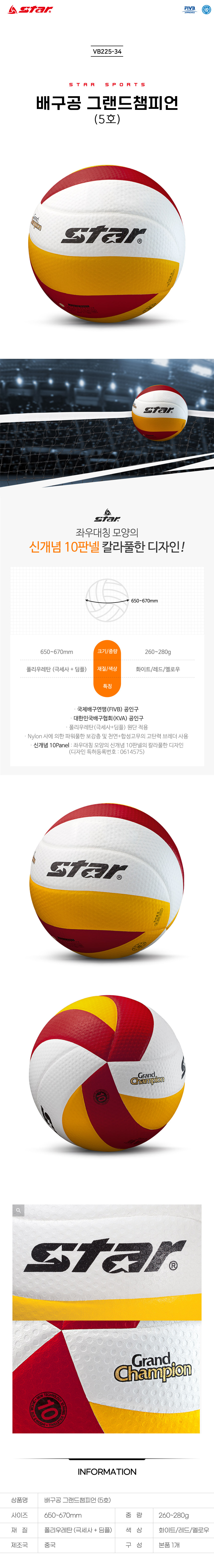 The Star Sports Grand Champion 2 VB225-34 is a world-class professional volleyball, officially certified by both the FIVB (International Volleyball Federation) and the KVA (Korea Volleyball Association). This elite match ball features a revolutionary 10-panel symmetrical design with a vibrant, colorful aesthetic that enhances visibility during high-speed play. Crafted from premium microfiber polyurethane with a dimpled surface, it provides an exceptionally soft touch and a non-slip grip, allowing for precise setting and powerful, stable spiking. The interior is engineered with a nylon-wound reinforced layer and a high-elasticity bladder made of natural and synthetic rubber, ensuring maximum power, shape retention, and consistent bounce. KC-certified and built to international standards, the Grand Champion 2 is the definitive choice for professional tournaments and elite club matches.