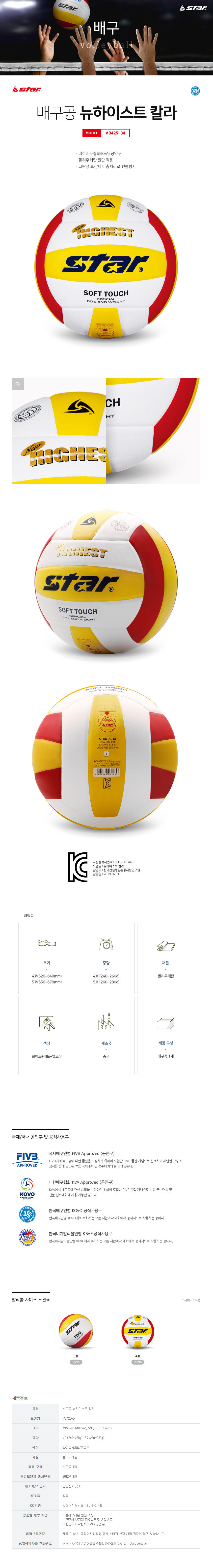 The Star Sports Volleyball VB425-34 is a high-performance size 5 ball, officially certified by the Korea Volleyball Association (KVA) for competitive play. Crafted with advanced Polyurethane (PU) fabric, it offers a superior soft touch that minimizes impact on arms and hands, allowing for precise sets and powerful spikes. The interior features a multi-layer high-elasticity reinforcement system that prevents deformation and ensures the ball maintains its perfect spherical shape through thousands of high-velocity hits. With its consistent bounce and stable flight path, this KC-certified volleyball is the professional standard for school athletics, club matches, and official tournaments.
