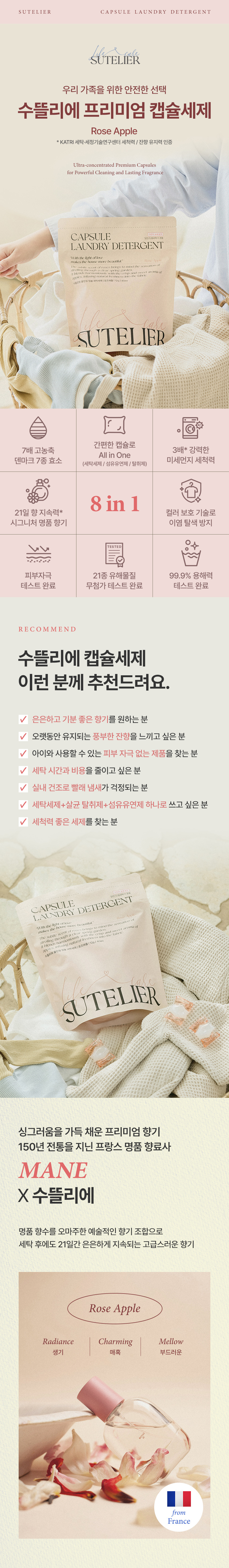 SUTELIER Premium 8-in-1 Ultra Concentrated All-in-One 3-Pod Laundry Detergent Capsules Rose Apple 40ea 12g _ Made in Korea