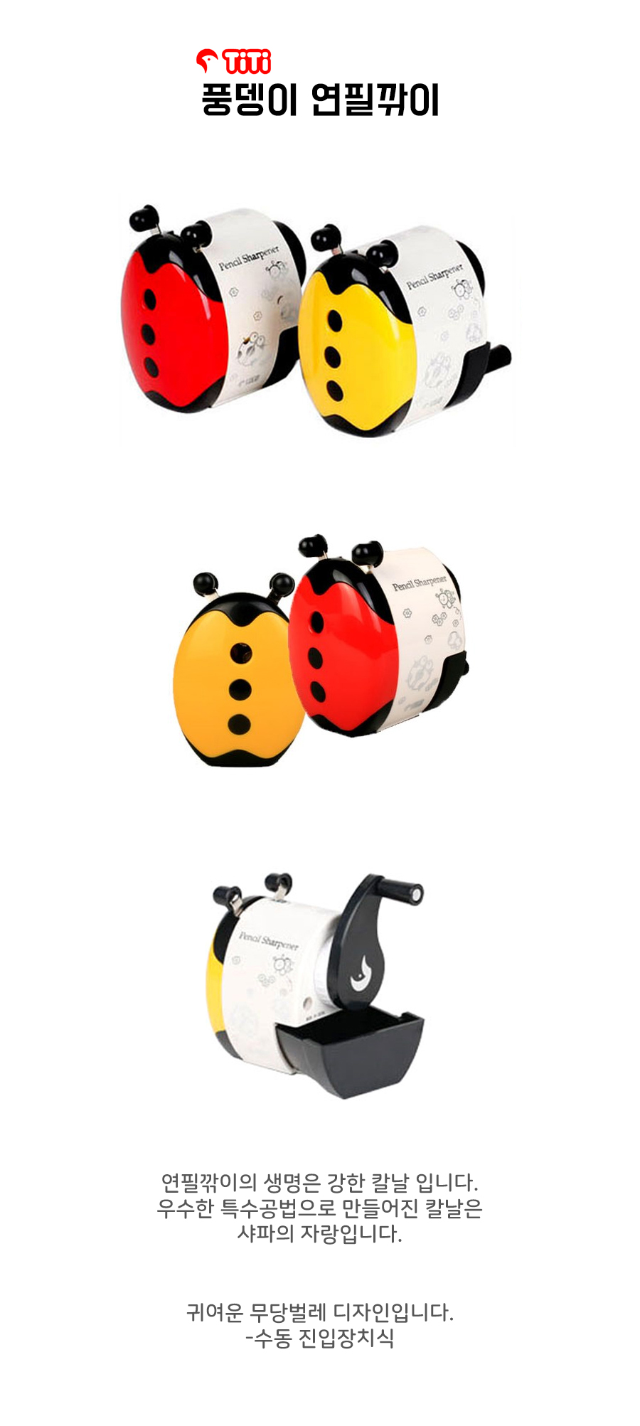 TiTi Ladybug Beetle Shape 5116A Manual Desktop Pencil Sharpener with High-Performance Alloy Blade