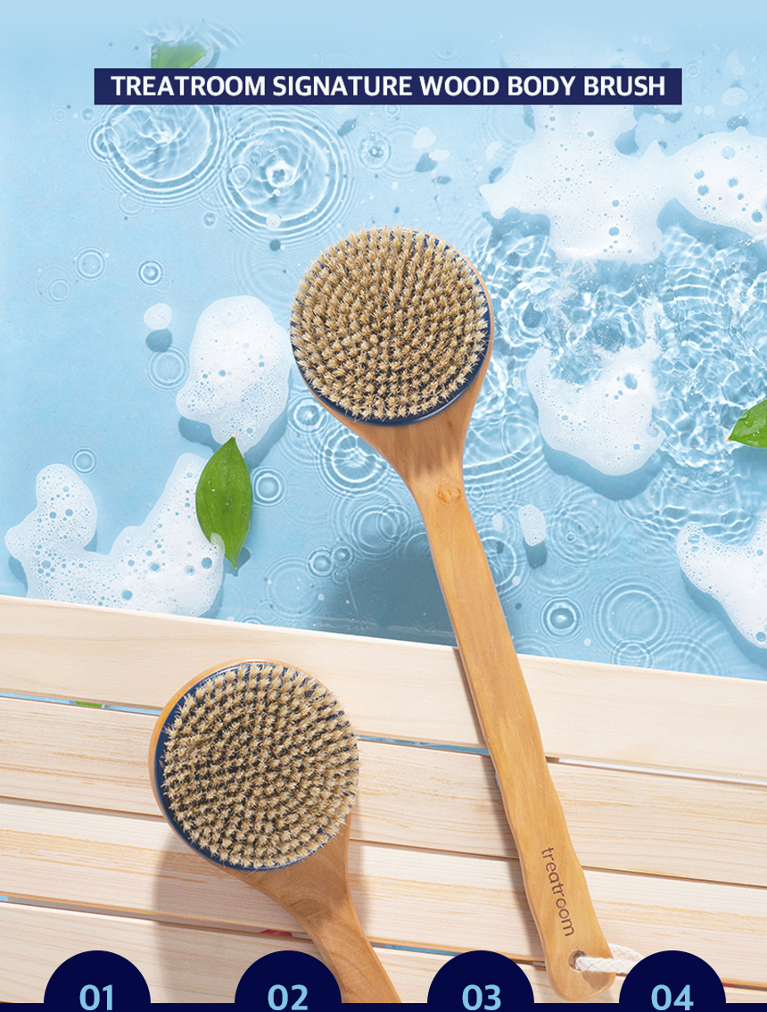 [TREATROOM] Signature wood body brush, elastic boar bristle brush for deep cleansing, waste removal, soft skin texture, dead skin removal, body care, shower brush