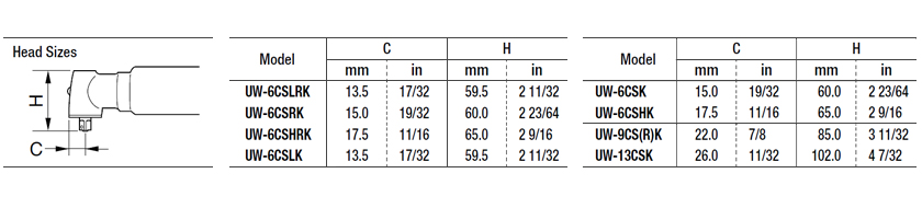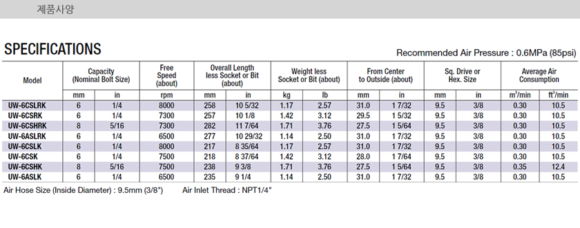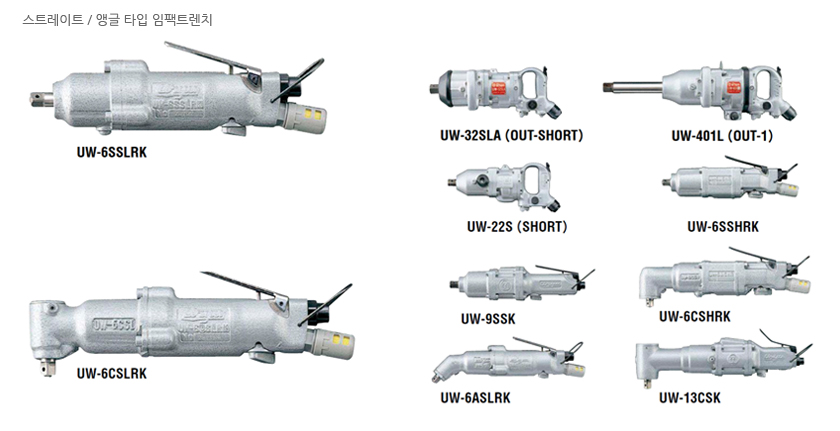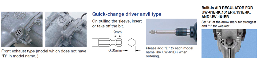 URYU IMPACT WRENCHES (ANGLE, STRAIGHT-TYPE) UW-6CSLK, Bolt Size 6mm, 8000 RPM, Hex Size 9.5mm, Air Wrench, Screwdriver