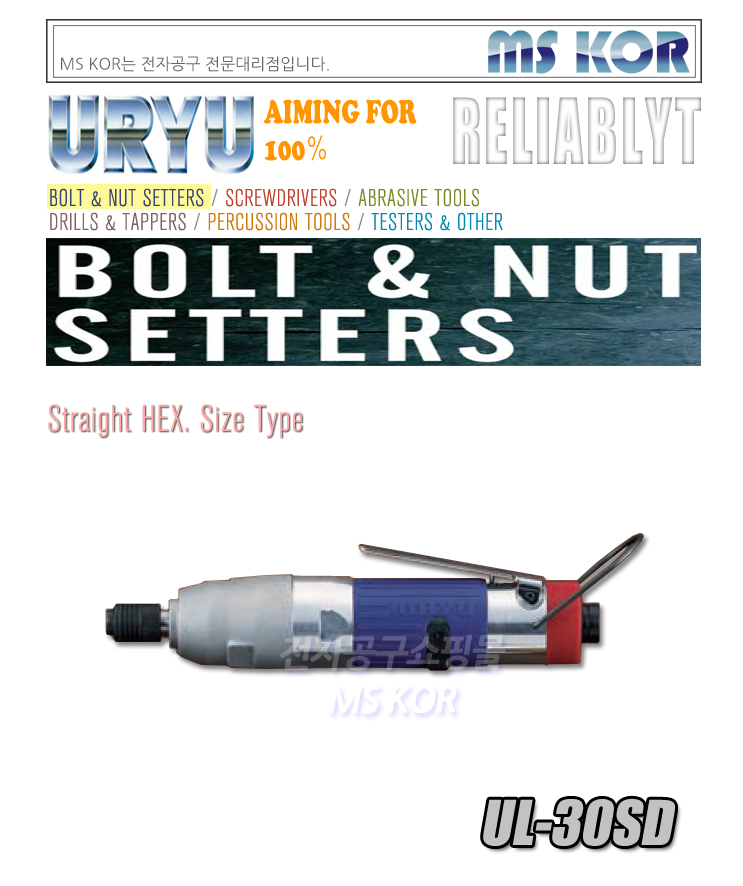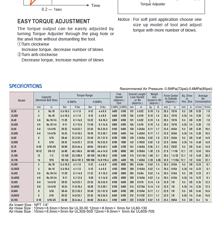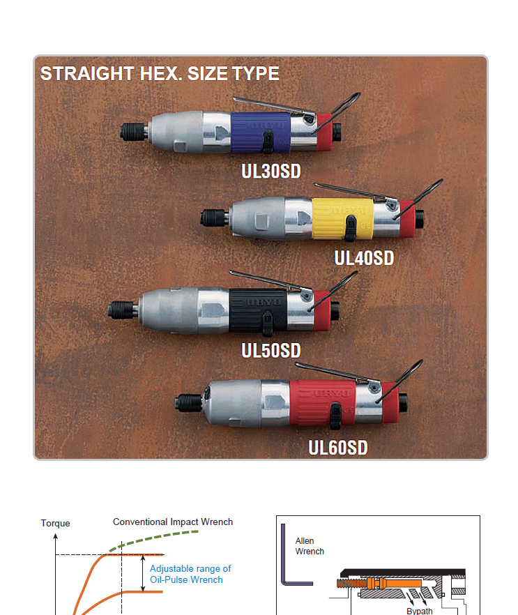 URYU OIL-PLUSE Driver (DRIVE-TYPE) UL30SD, Torque Range 5.5~10.5, 6.0~12.Nm, Bolt Size 5mm, 4700~5000 RPM, Hex Size 6.35mm, Air Wrench, Screwdriver