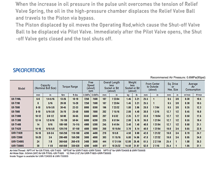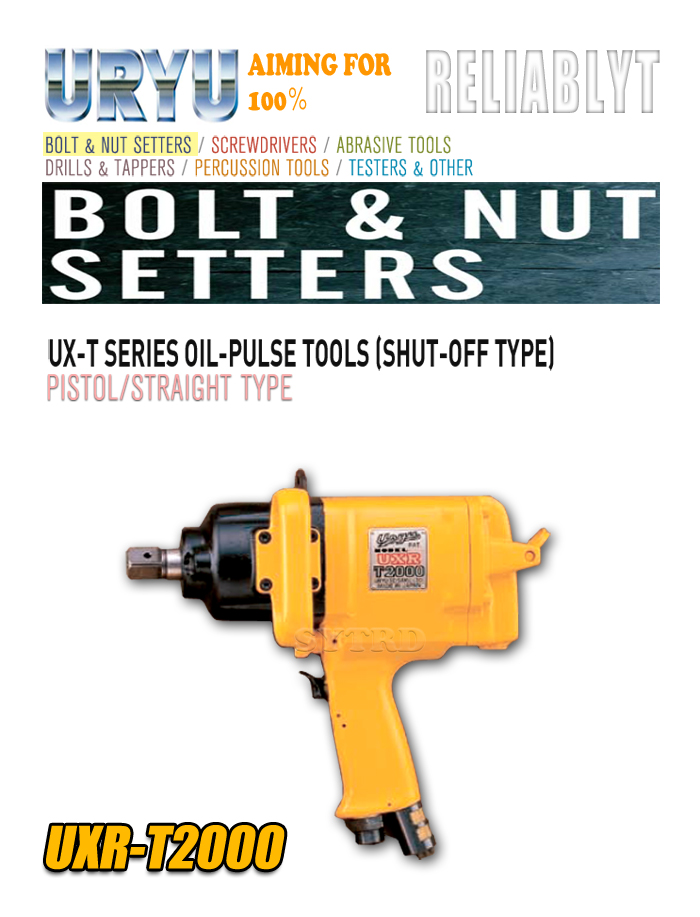 URYU OIL-PULSE Driver (SHUT-OFF, PISTOL-TYPE) URX-T2000, Torque Range 200~400Nm, Bolt Size 18~20mm, 4000, 7500 RPM, Hex Size 19mm, Air Wrench