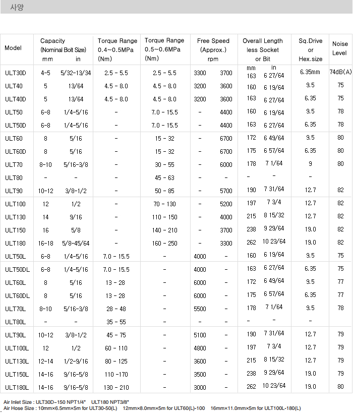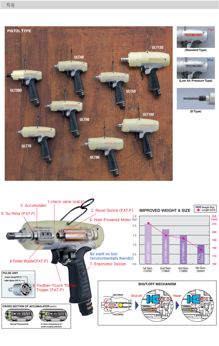 URYU OIL-PULSE TOOL (SHUT-OFF, Pistol Type) ULT30D, Torque Range 2.5~5.5Nm, Bolt Size 4~5mm, 3300~3700 RPM, Hex Size 6.35mm, Air Wrench, Screwdriver