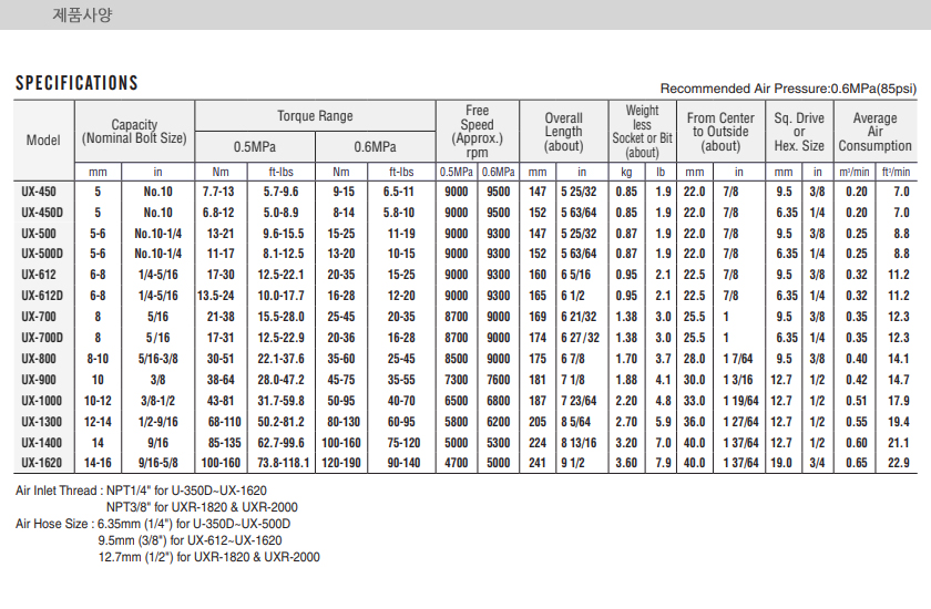 URYU OIL-PULSE TOOL (PISTOL-TYPE) UX-450D, Torque Range 6.8~12, 8~14Nm, Bolt Size 5mm,9000, 9500 RPM, Hex Size 6.35mm, Air Wrench, Screwdriver