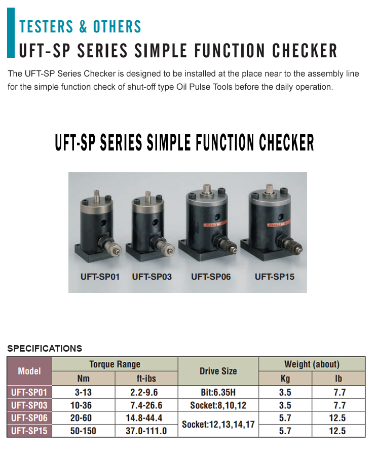 URYU SIMPLE FUNCTION CHECKER UFT-SP01, UFT-SP03, UFT-SP06, UFT-SP15, For the shut-off type Oil Pulse Tools