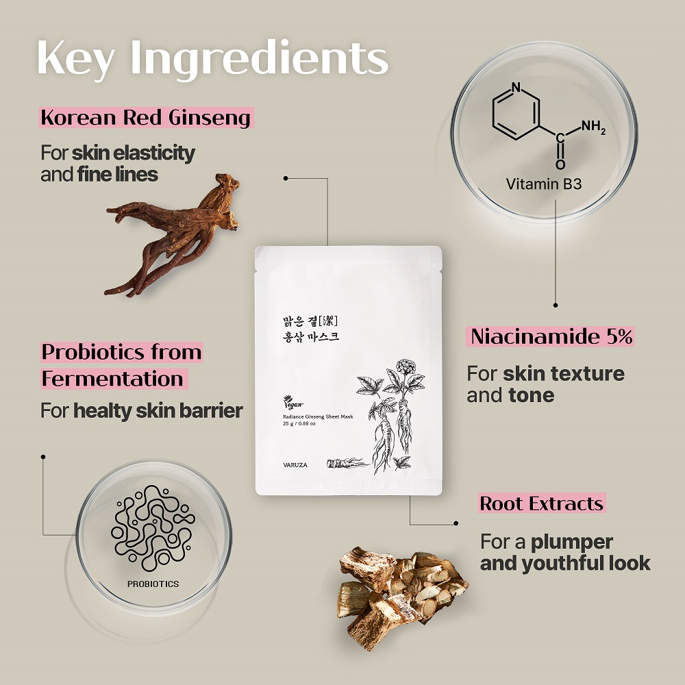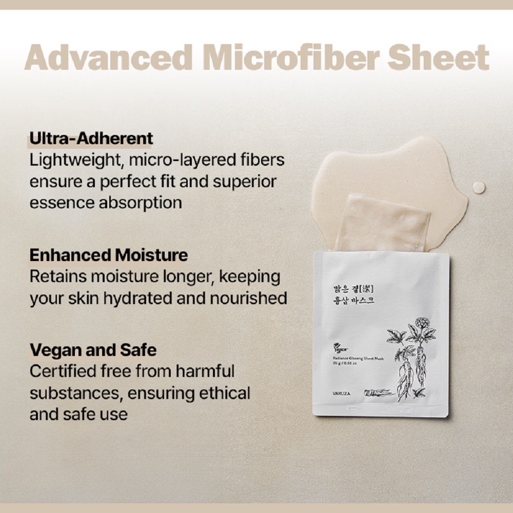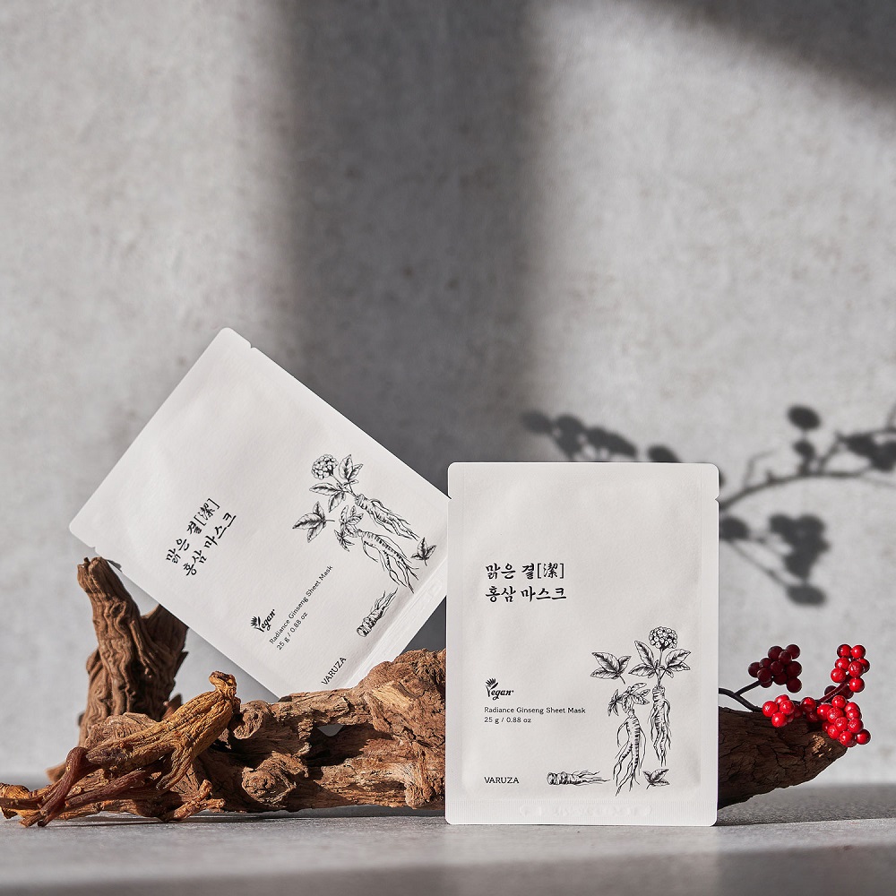 [VARUZA] Vegan-Certified Radiance & Moisture Red Ginseng Mask (10 Sheets) Promotes Blood Circulation for Vibrant and Energized Skin – Made in Korea