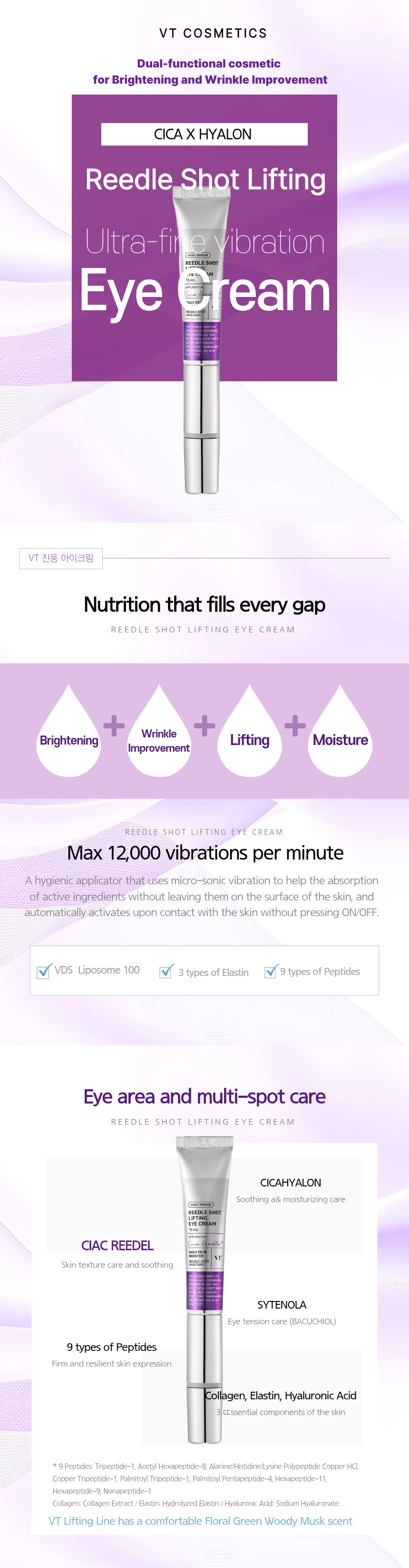 [VT Cosmetics] Reedle Shot Lifting Vibrating Eye Cream 15ml | 12,000 Micro Vibrations/Min | Dual Functional (Brightening & Wrinkle Care) | Cica Reedle _ Made in Korea