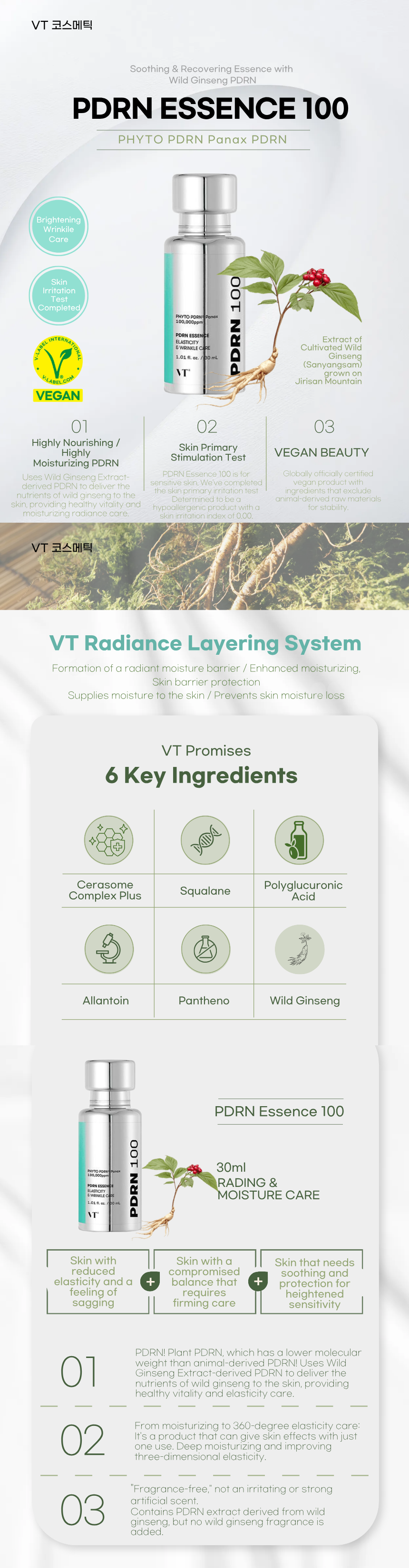 [VT Cosmetics] VT Wild Ginseng PDRN Essence 100 - Vegan Low Molecular PDRN for Inner Firmness, Vitality, and Radiant Glow (30ml)
