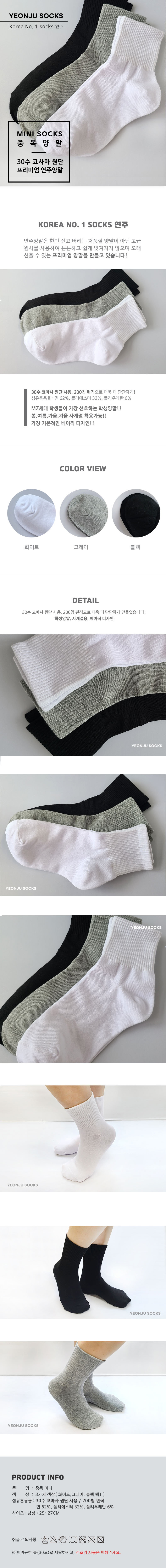 Yeonju Socks Men's Solid Color Crew/Mid-Calf Socks 12 Pairs | 30s Combed Cotton & 200 Needle Count | All-Season Basic Socks | Made in Korea