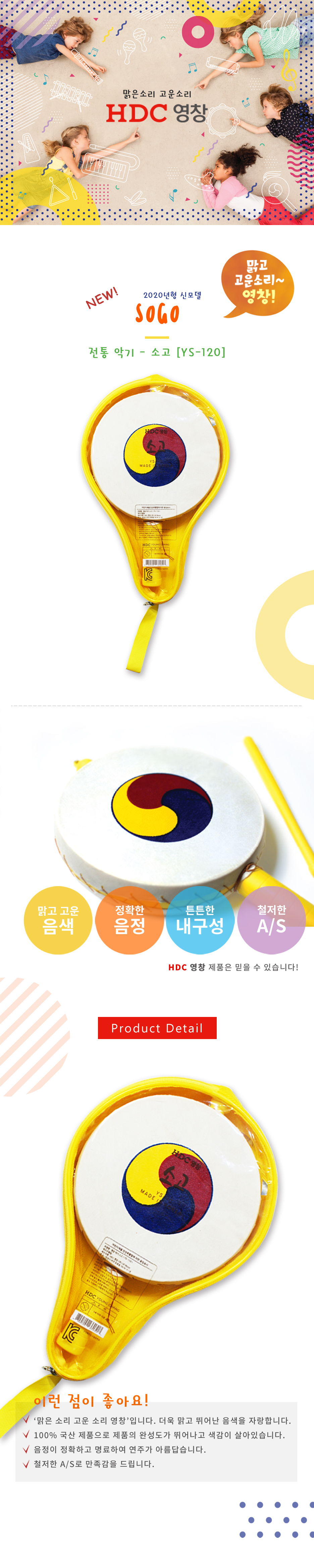 [YoungChang] Korean Traditional Hand Drum 'Sogo' YS-120 | Beginner Friendly | Lightweight Plastic Body | Includes Storage Bag | Made in Korea