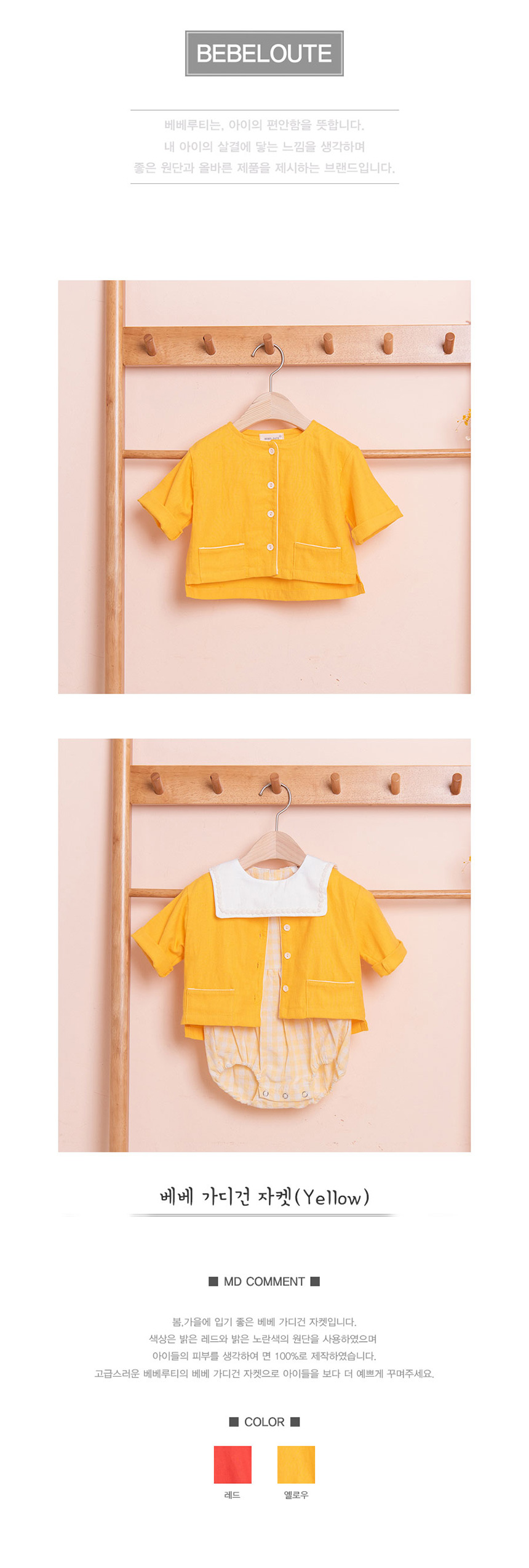 [BEBELOUTE] Bebe Cardigan Baby Jacket (Yellow), Daily Look, Spring, Fall Fashion for Infant, 100% Cotton_ Made in KOREA